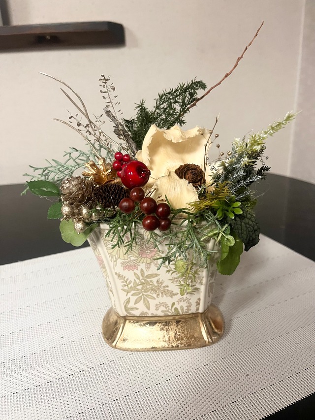 ちょっと華やかな器にクリスマスのアレンジをしてみました。 一点物です。