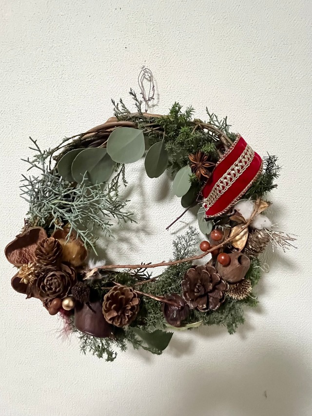 クリスマスリース ミディアムサイズです。 スタンダード?!な感じもありつつ、一点もの!のイメージで。