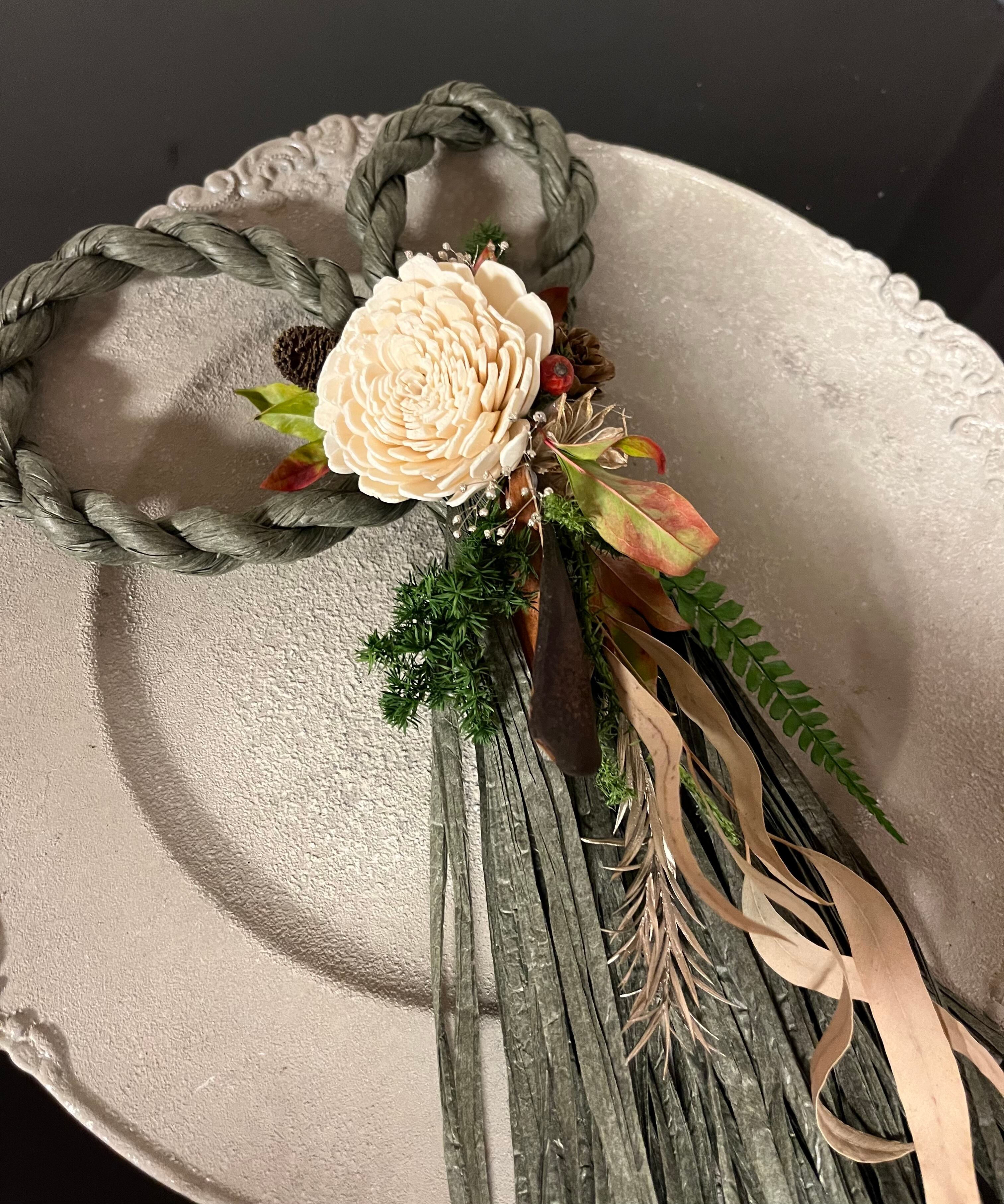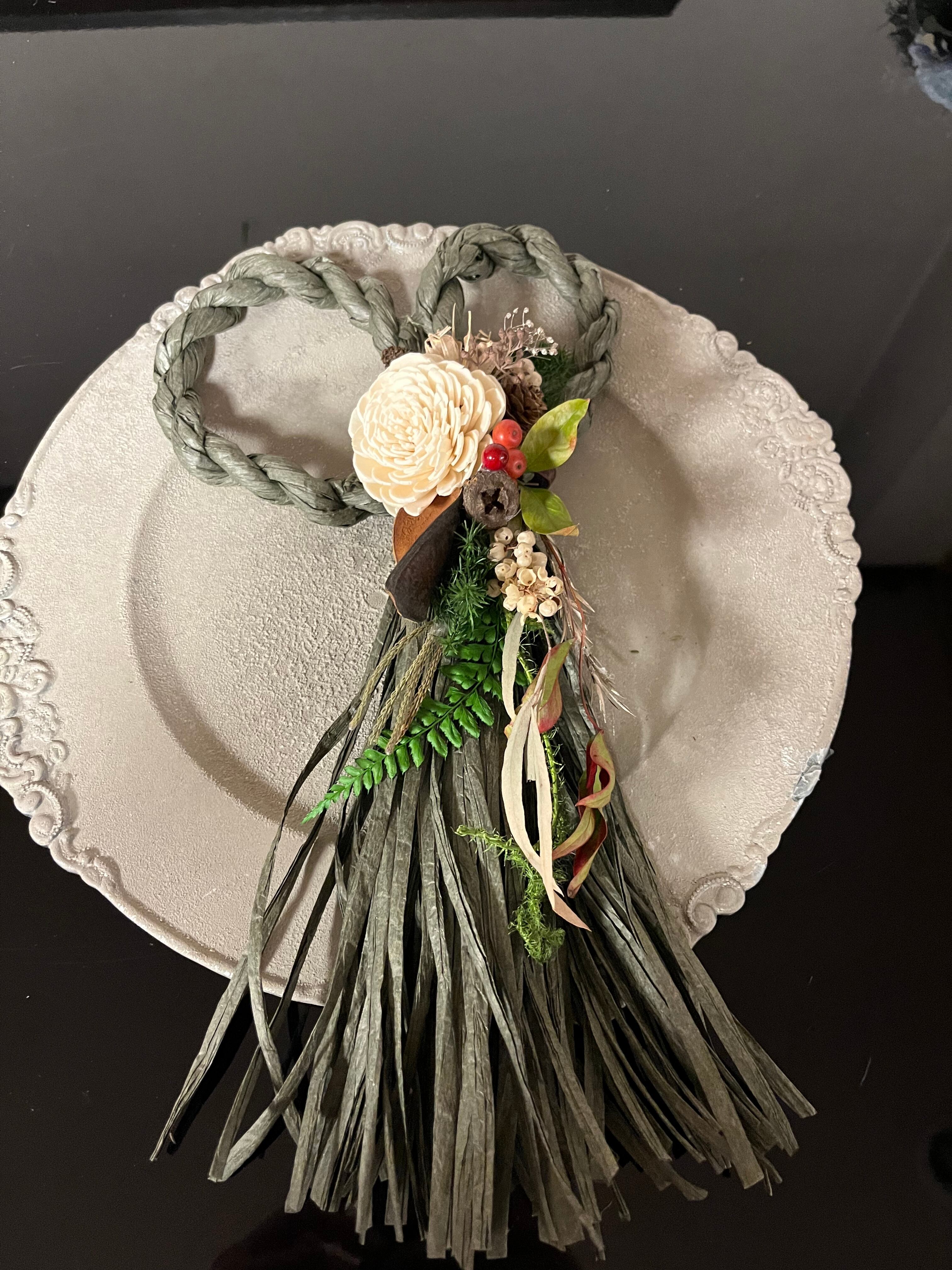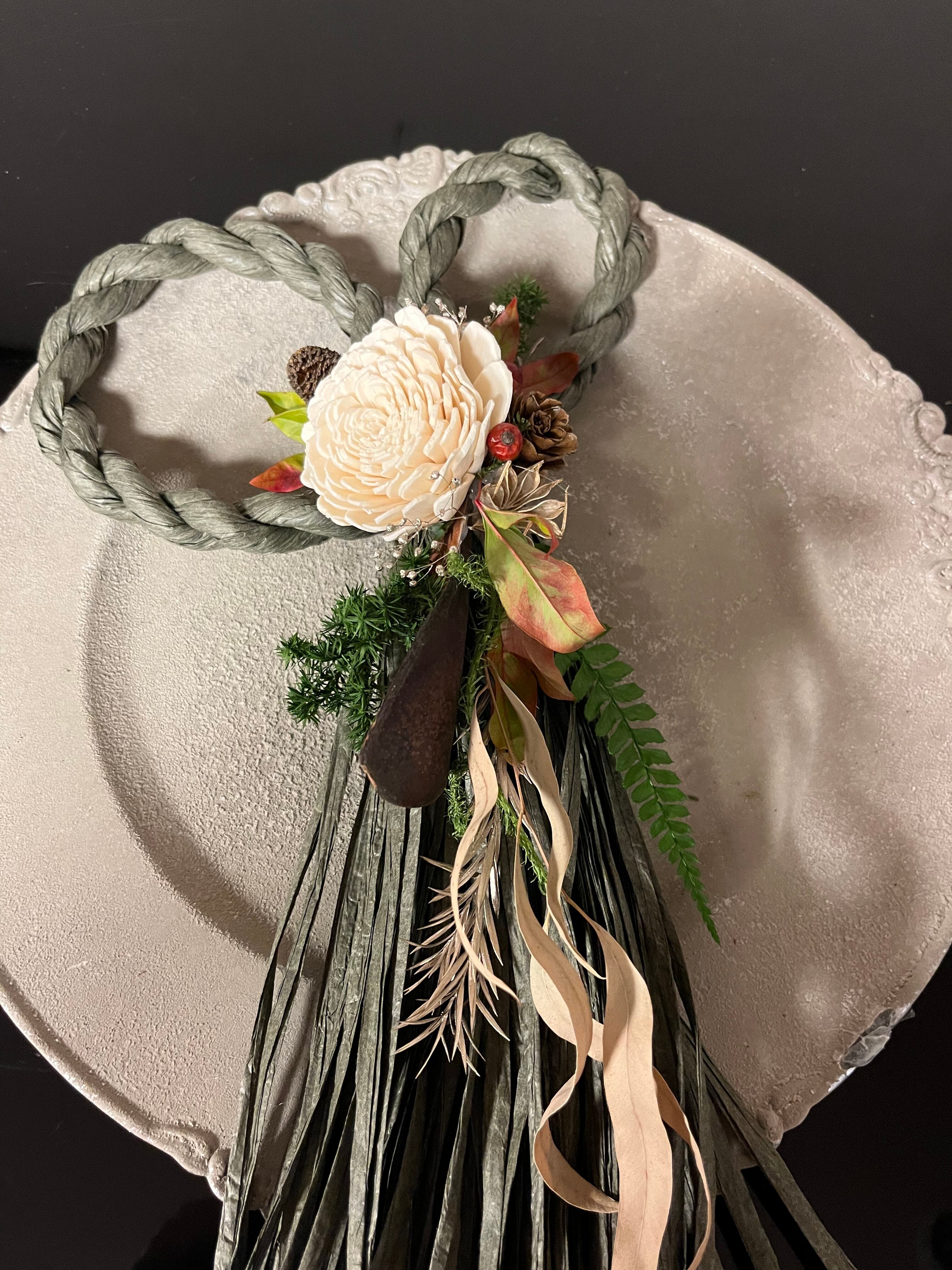 とても渋いグリーンのしめ縄で、シックに作成しました。