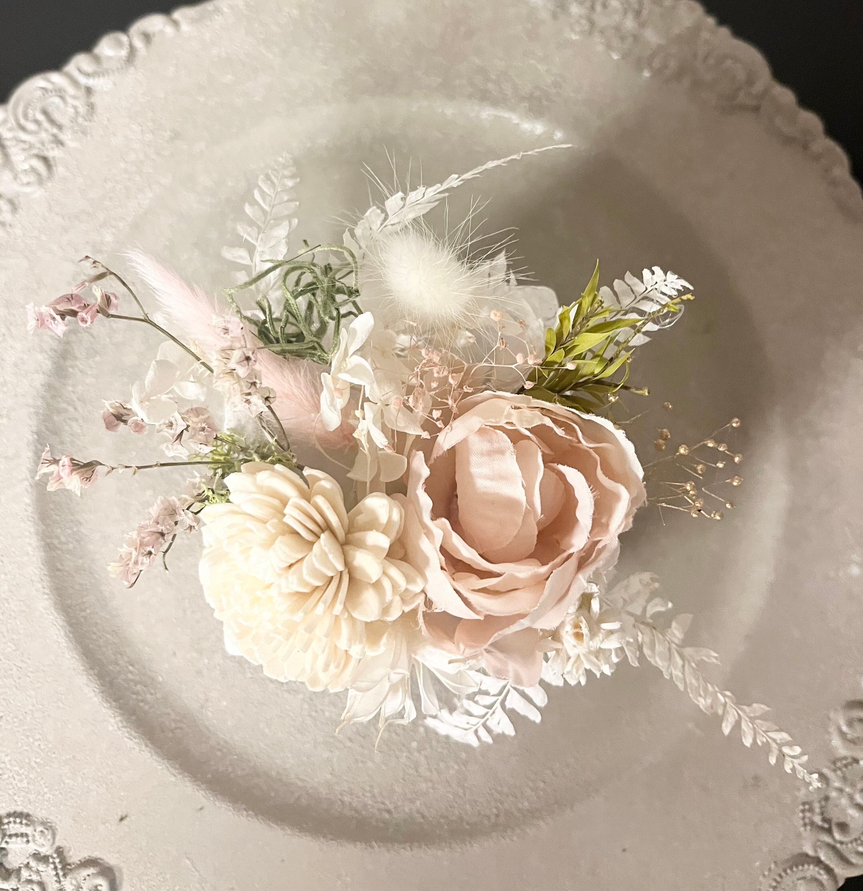 優しいピンク色のフラワーアレンジです。(ドライフラワー&造花のミックス)