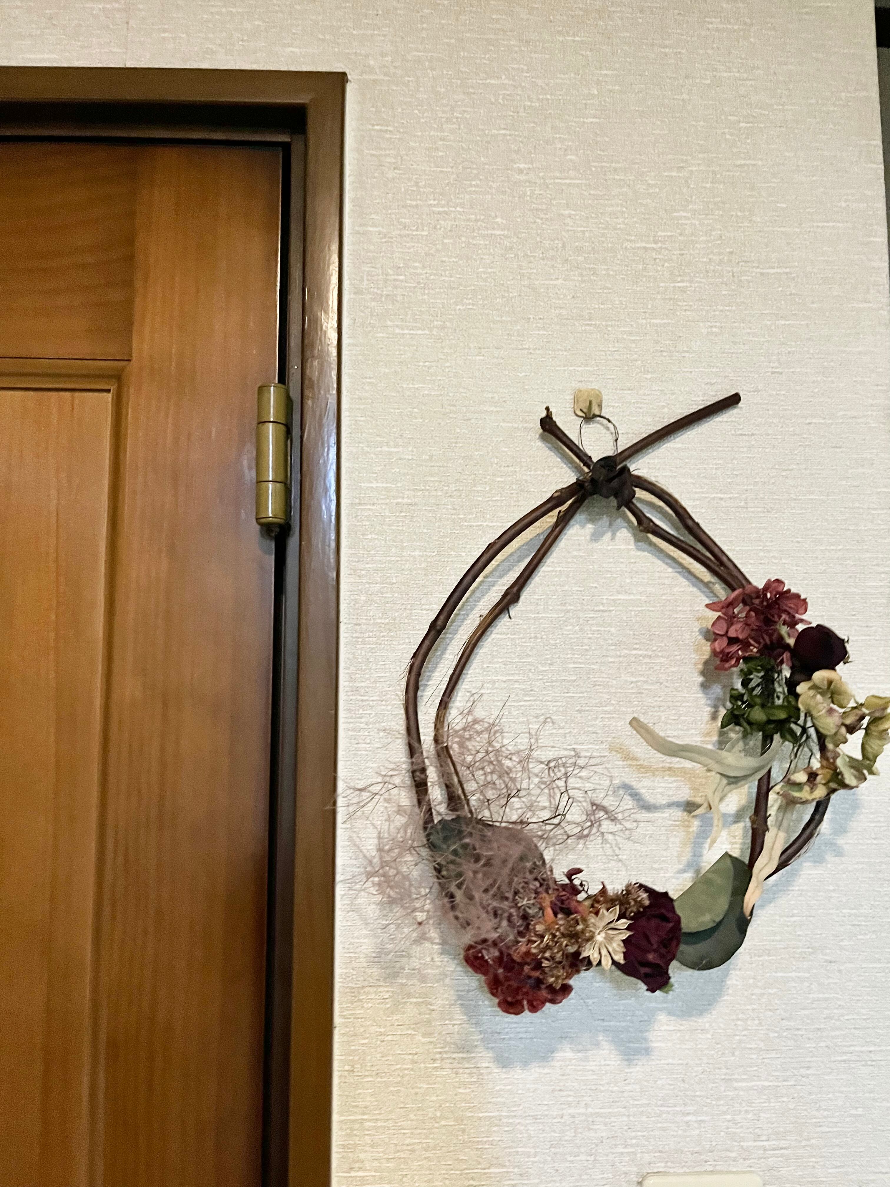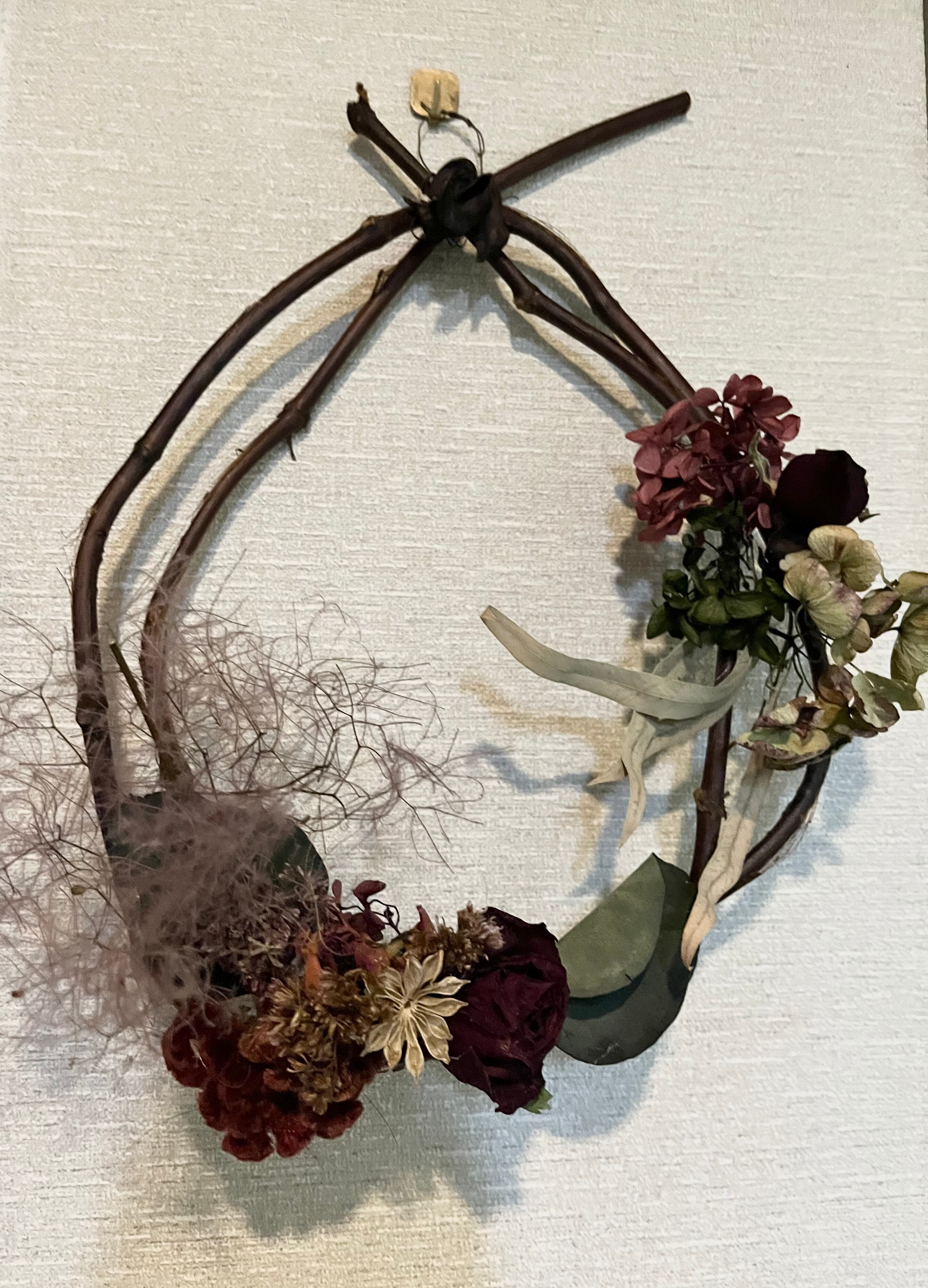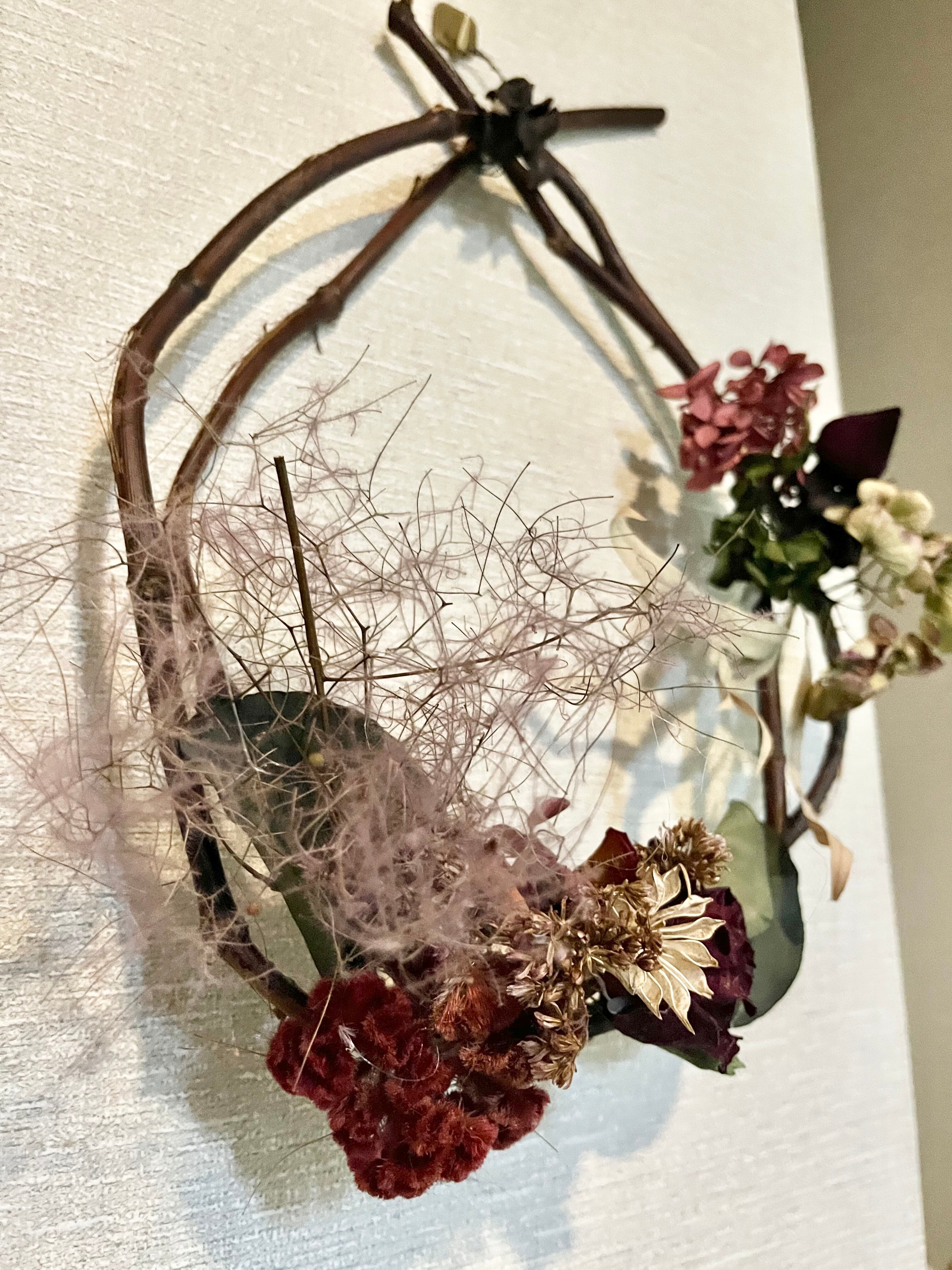 葡萄の蔦に、紫の紫陽花などをポイントに創作してみました。