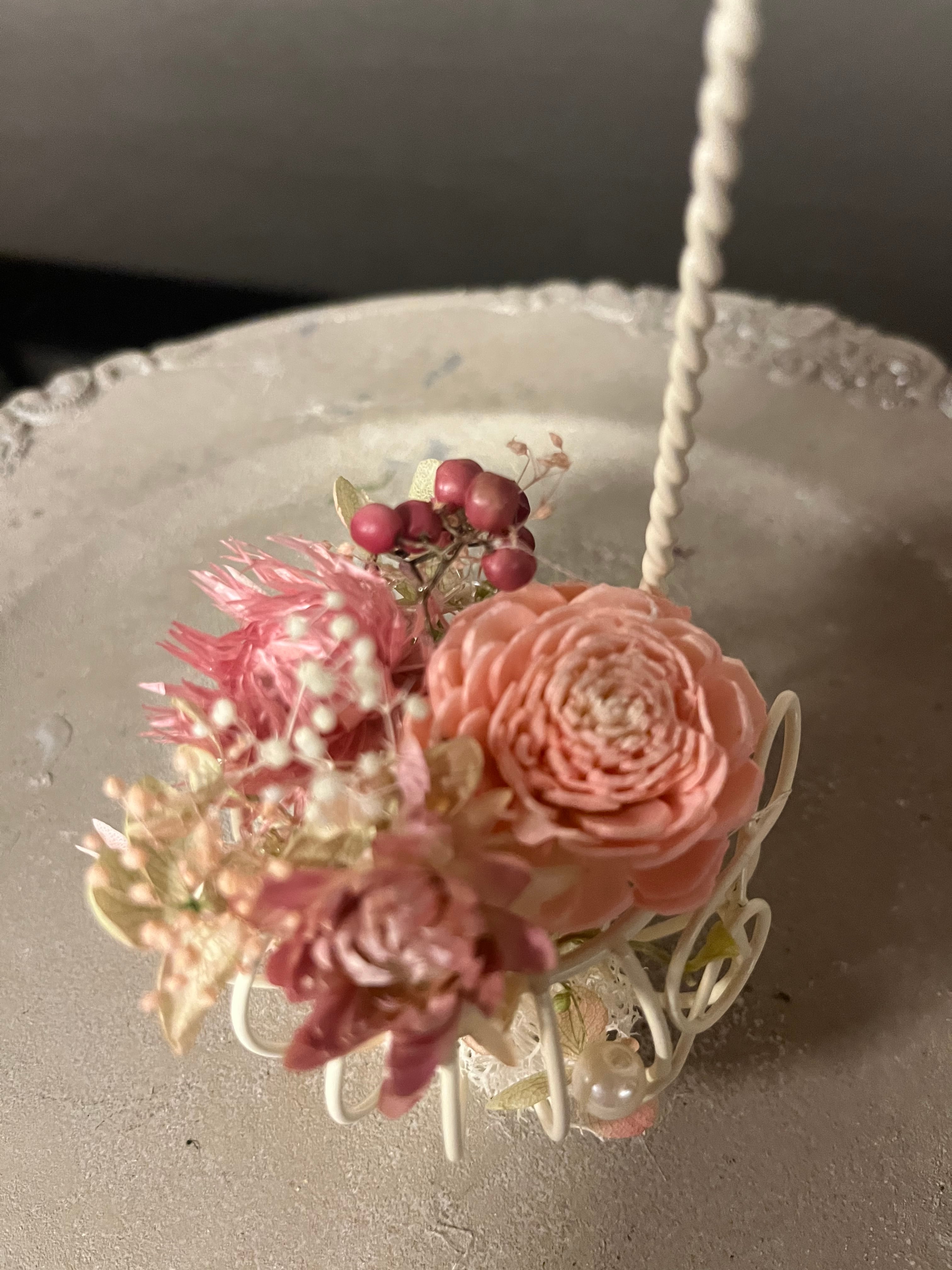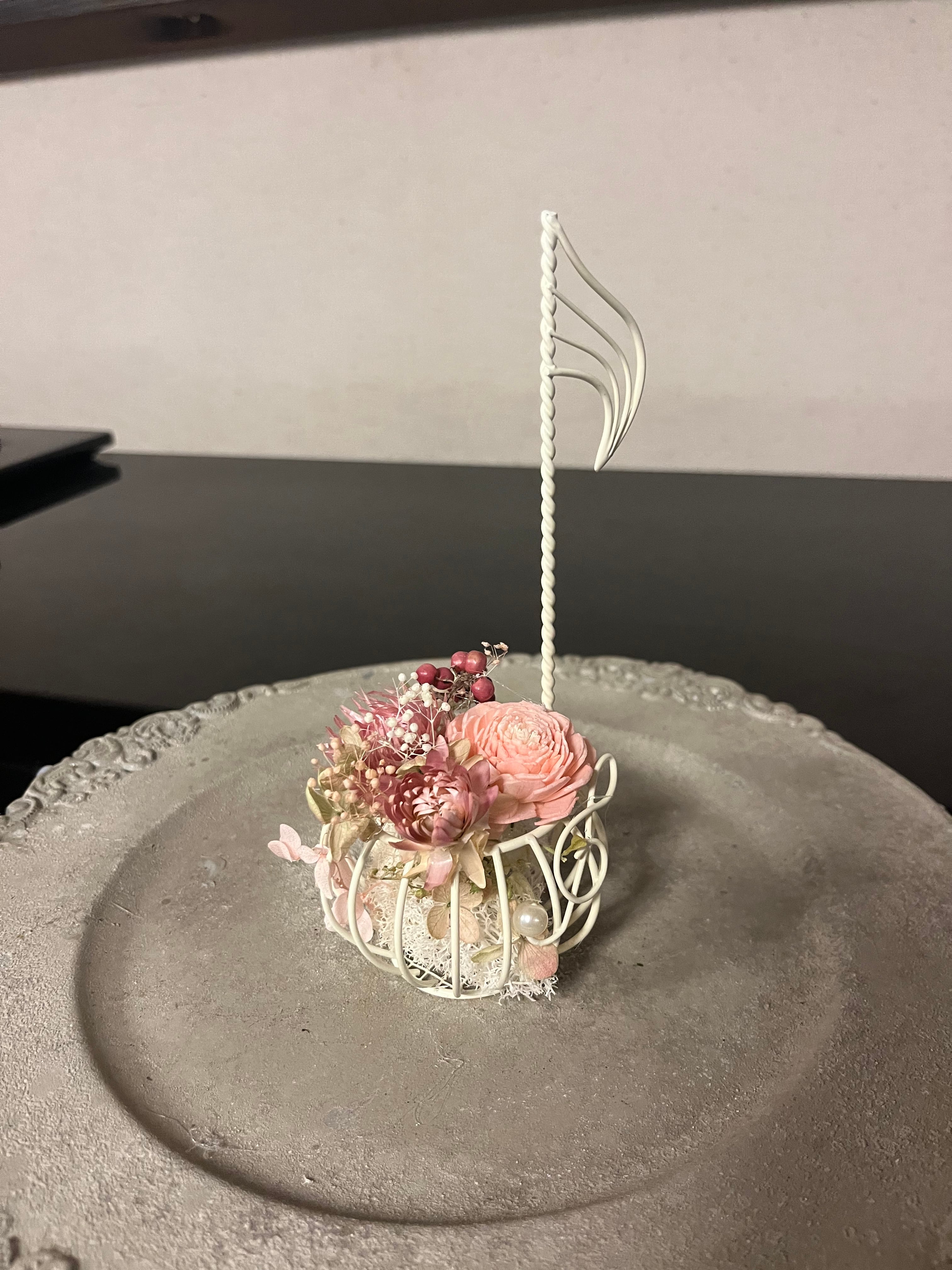 音符の器にピンクの造花やドライフラワーを。 コンサートや発表会のプレゼントや ピアノ教室、ピアノの部屋などにも♪♪✨