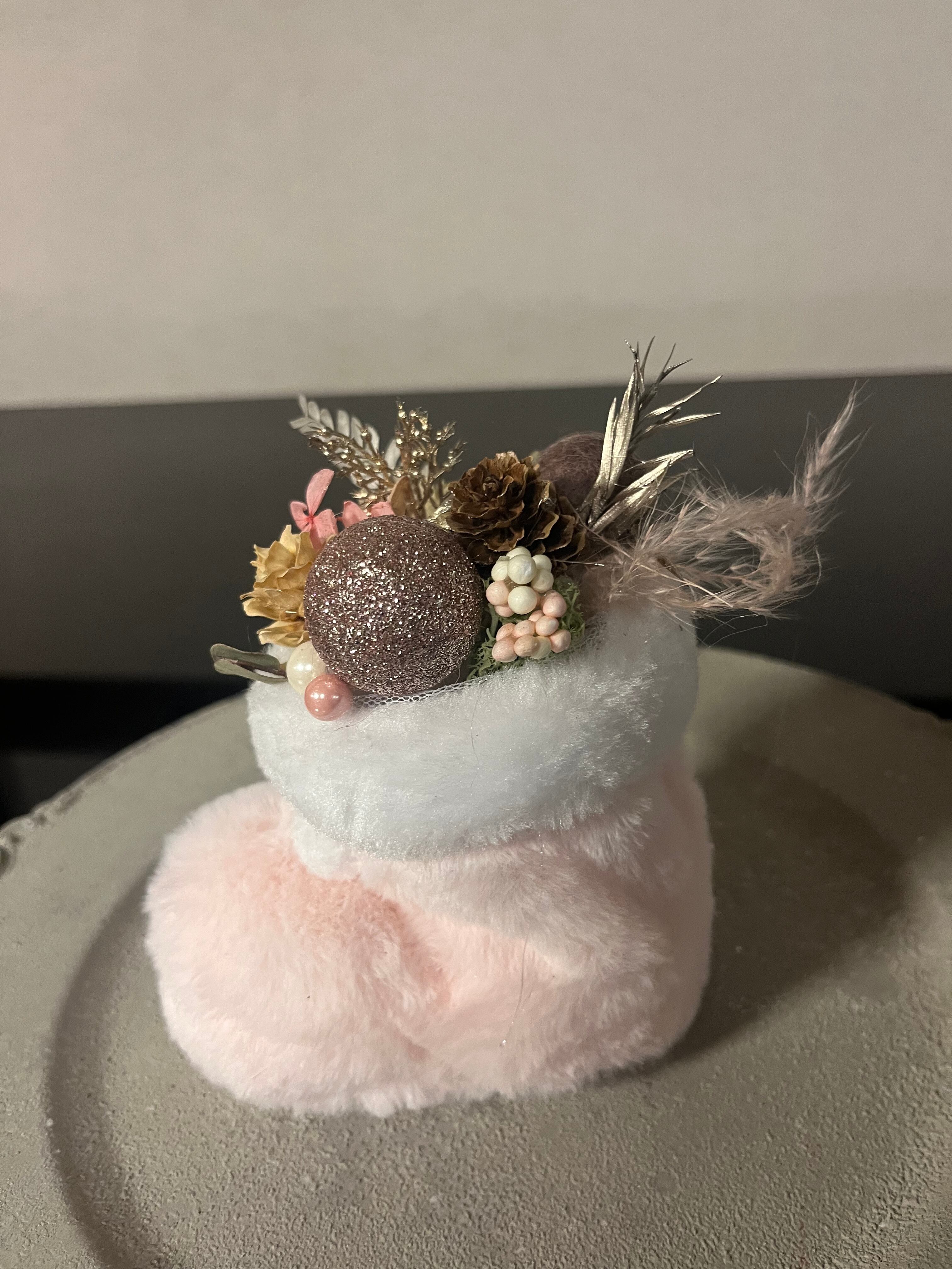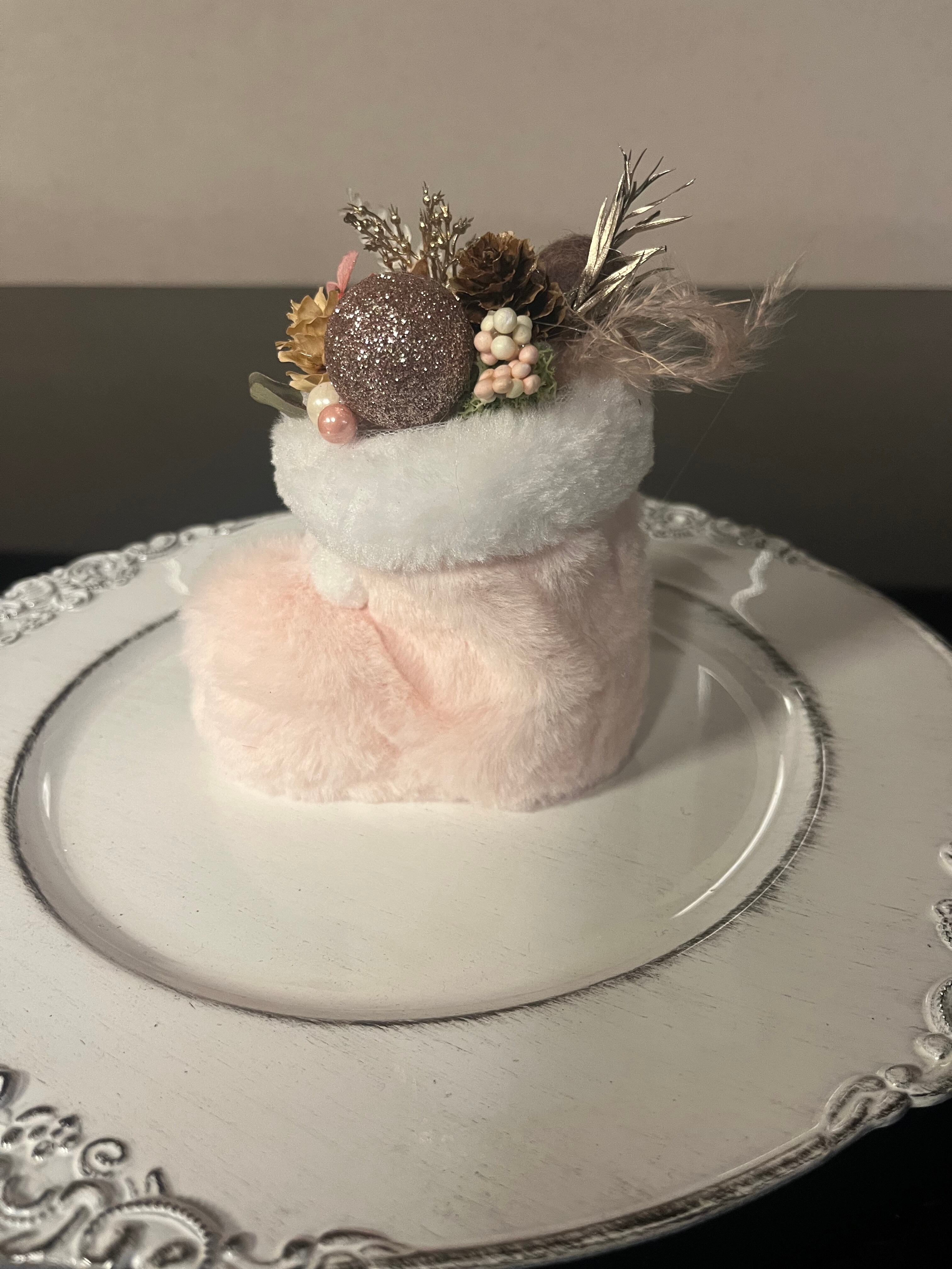 ピンクのブーツのクリスマスアレンジ