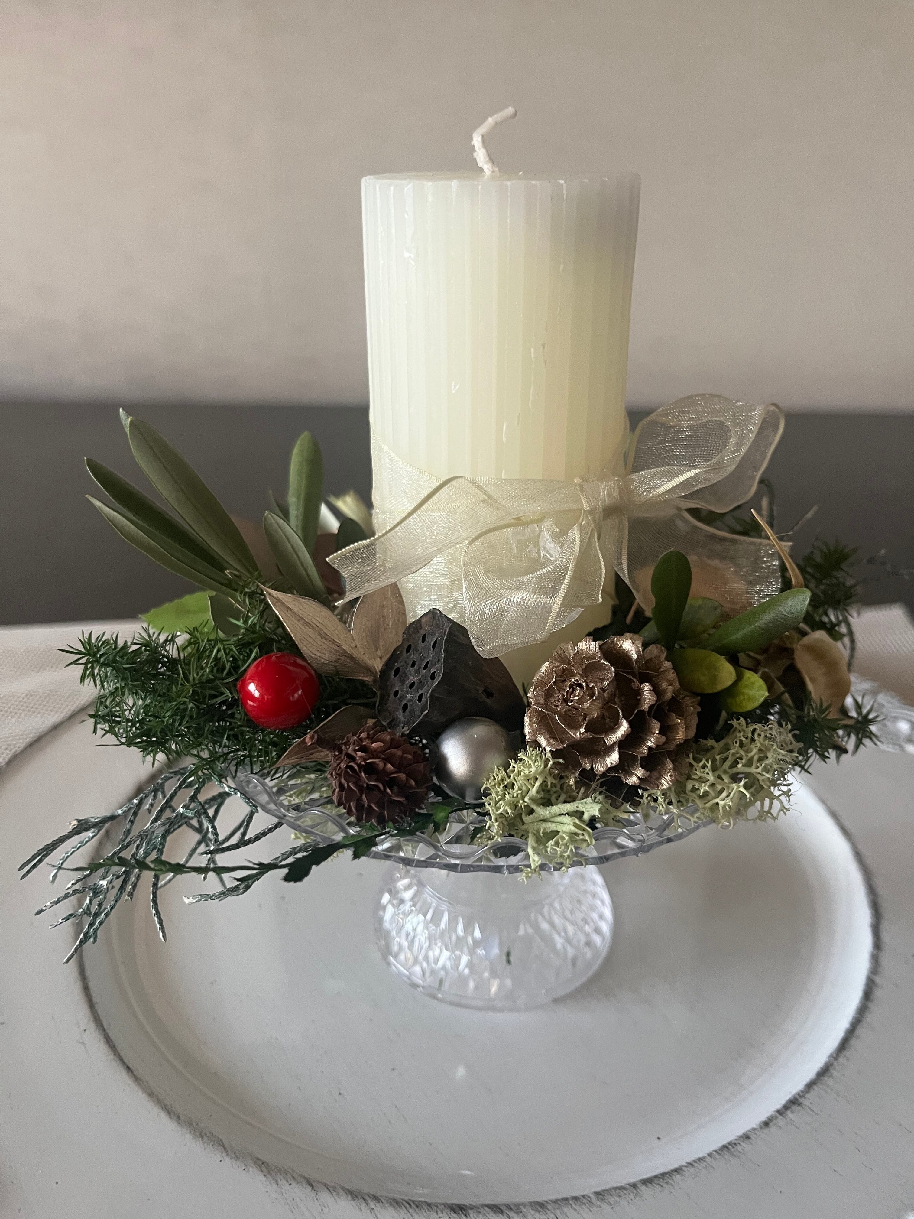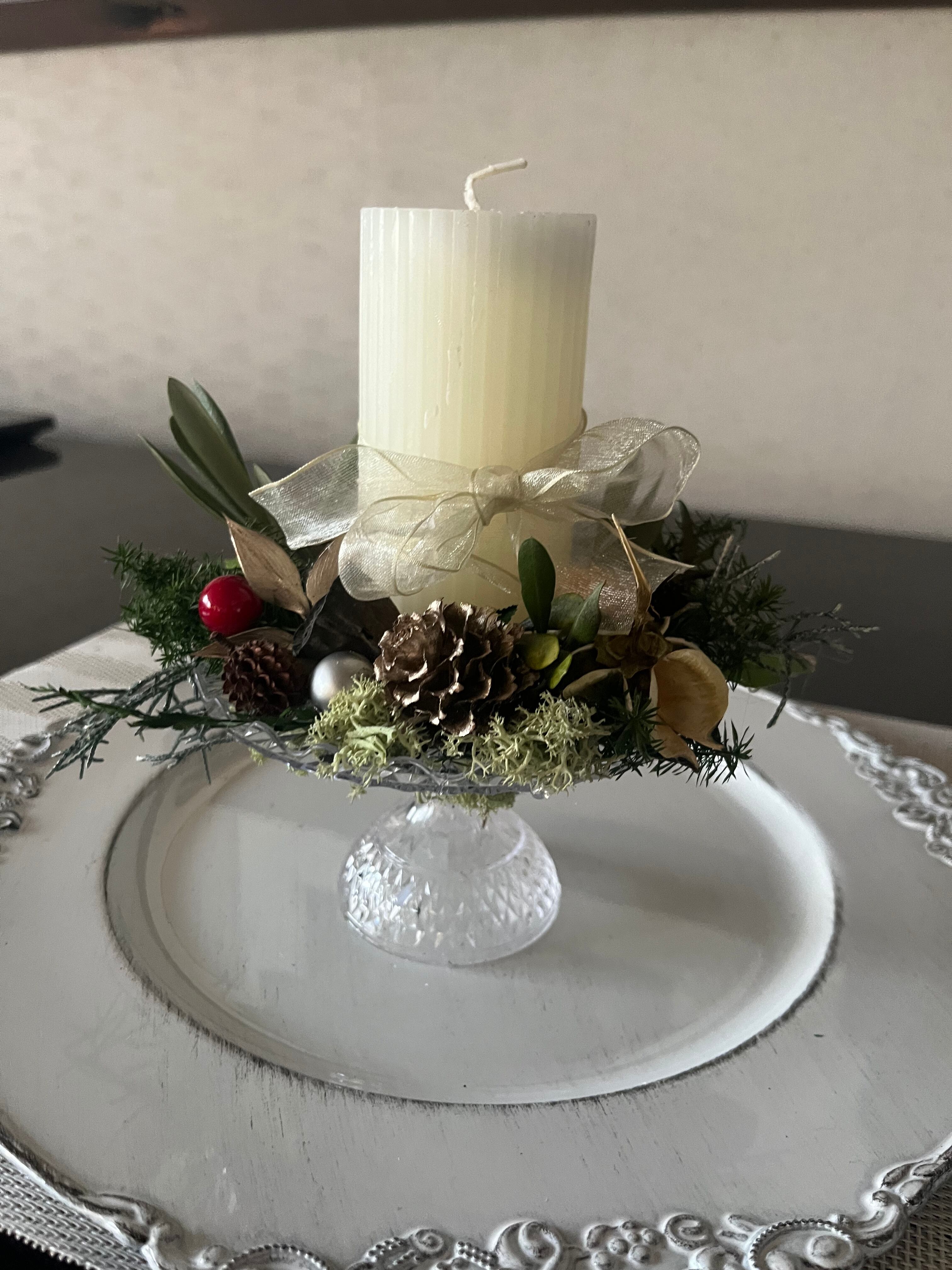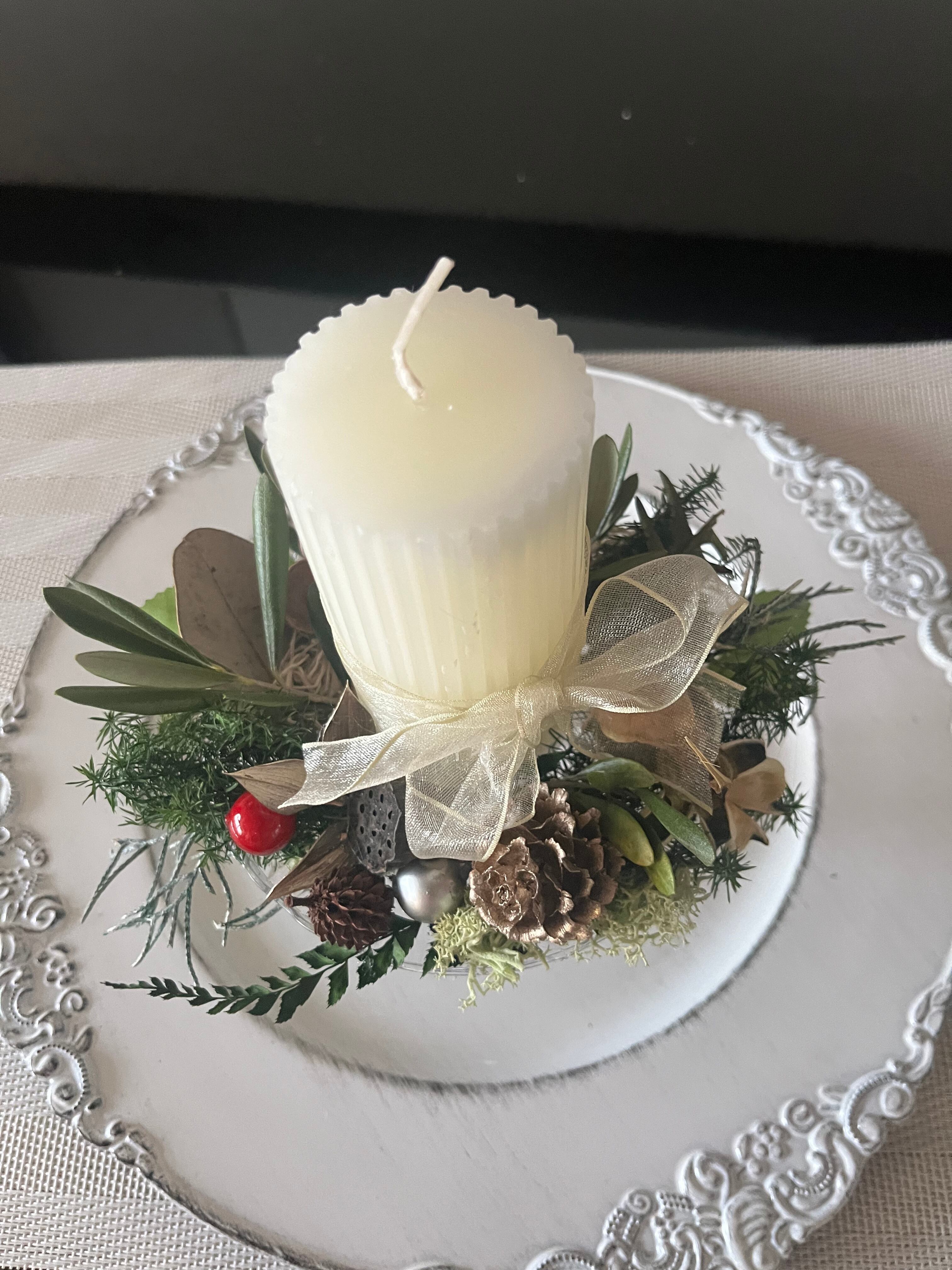 白のキャンドルにスッキリ&清い雰囲気のキャンドルスタンドです✨